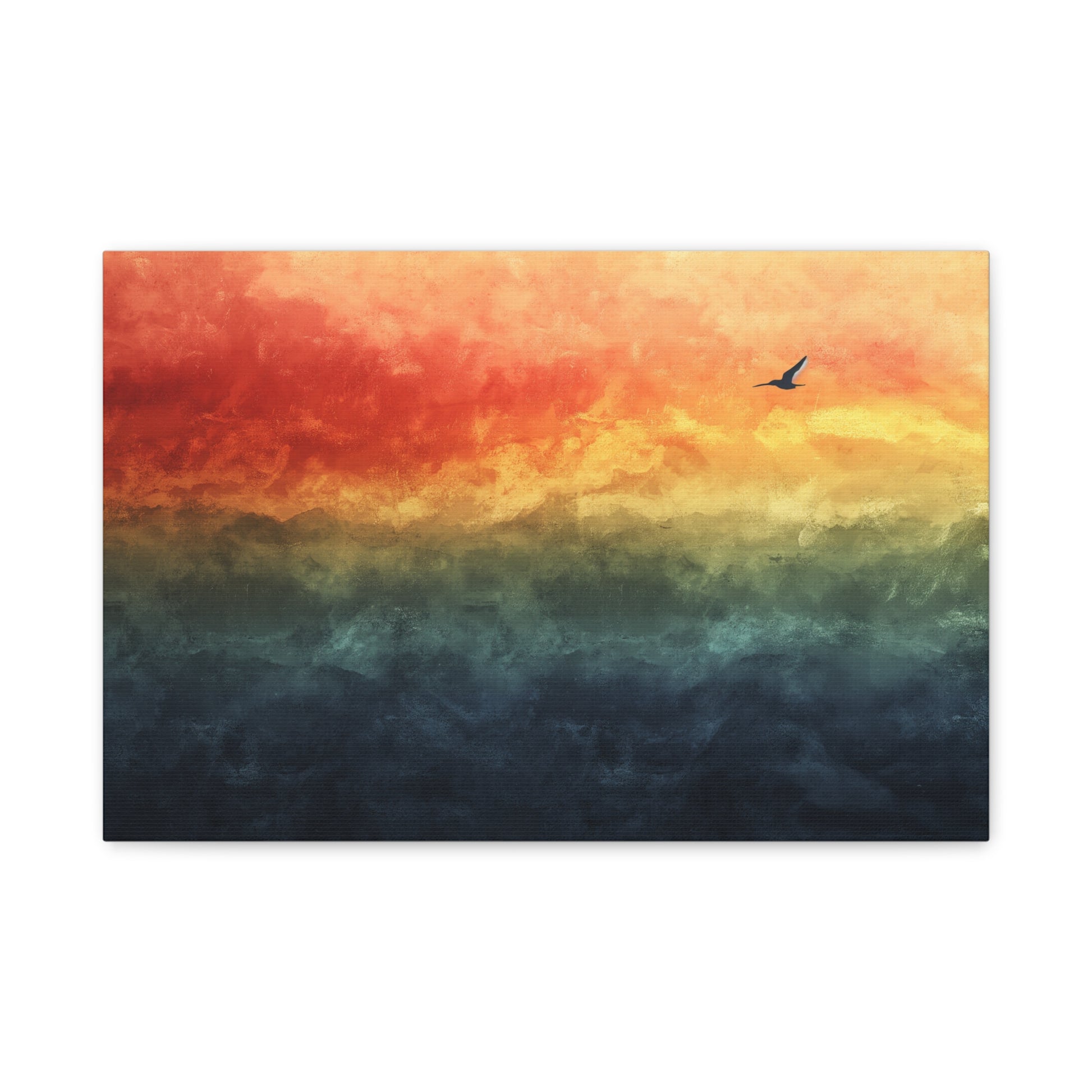 Introducing "Flying" Modern Matte Canvas Print, a serene setting using rainbow colors to illustrate color diversity.