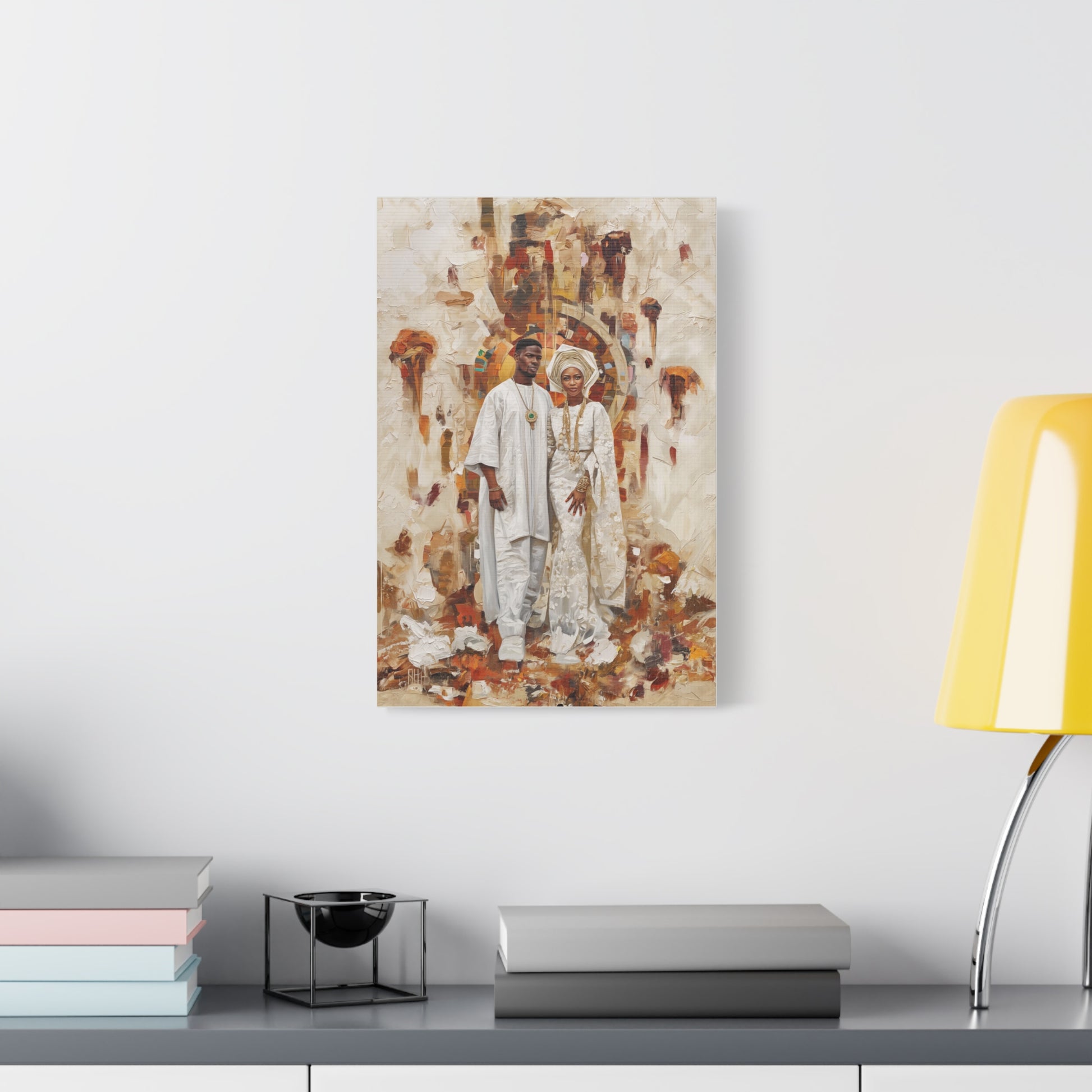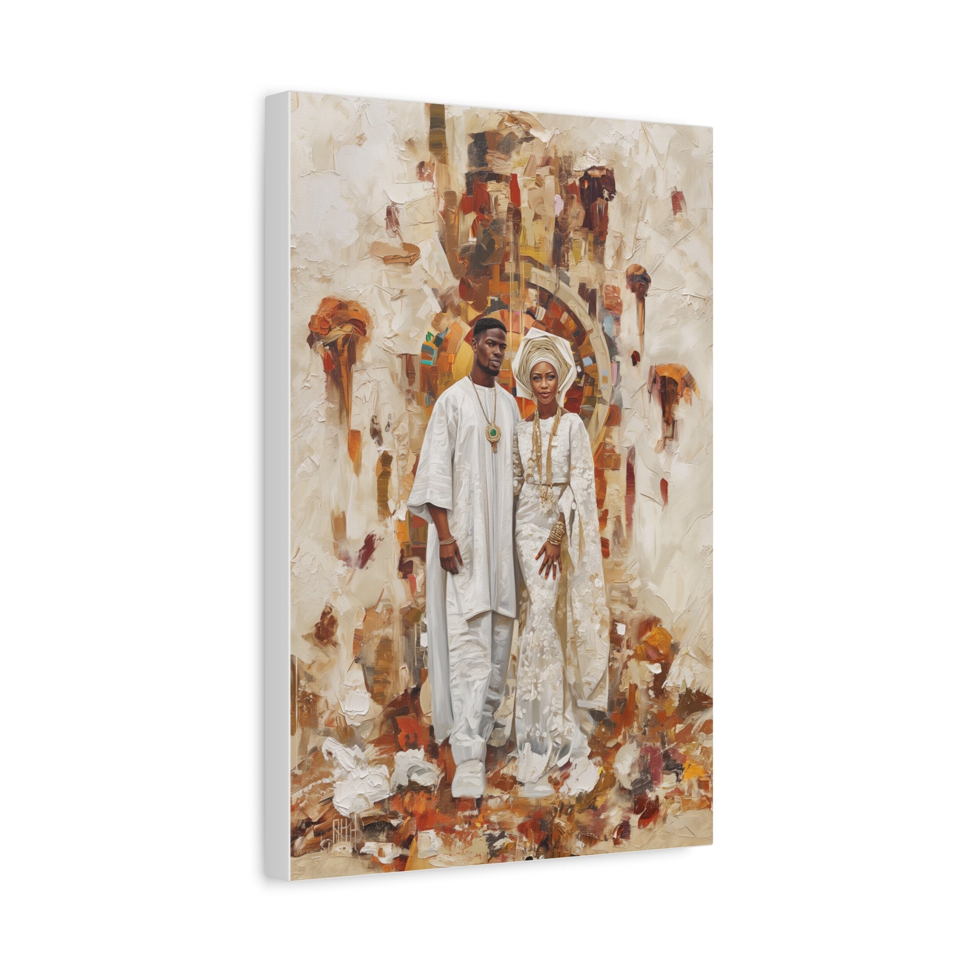 Introducing the "The King and Queen" Captivating Matte Canvas Print, a powerful depiction of African couple standing together showing strength and unity. Exemplifying royalty, and resilience, making it a perfect addition to your space. Calming colors standout bringing a peaceful energy to any room.